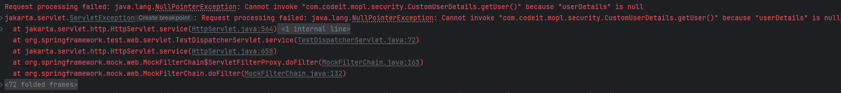 jakarta.servlet.ServletException: Request processing failed: java.lang.NullPointerException: Cannot invoke "cohttp://m.codeit.mopl.security.CustomUserDetails.getUser()" because "userDetails" is null