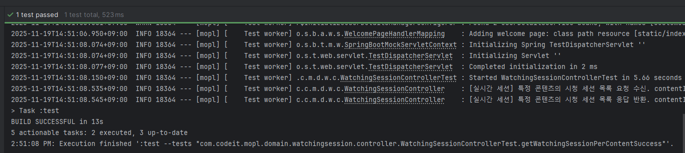 특정 컨텐츠의 시청 세션 목록 조회 컨트롤러의 테스트를 구현해야 했었다: