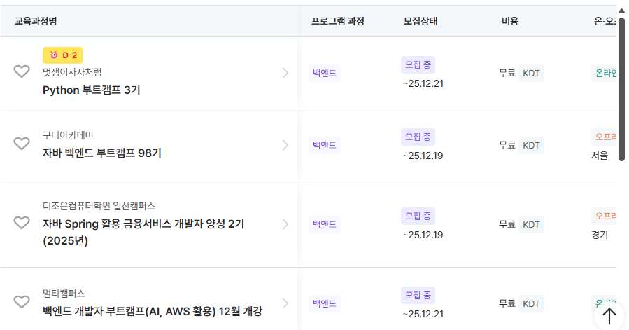 그래서 부트캠프를 알아봤는데, 부트텐트라는 웹사이트를 이용한 기억이 있다: