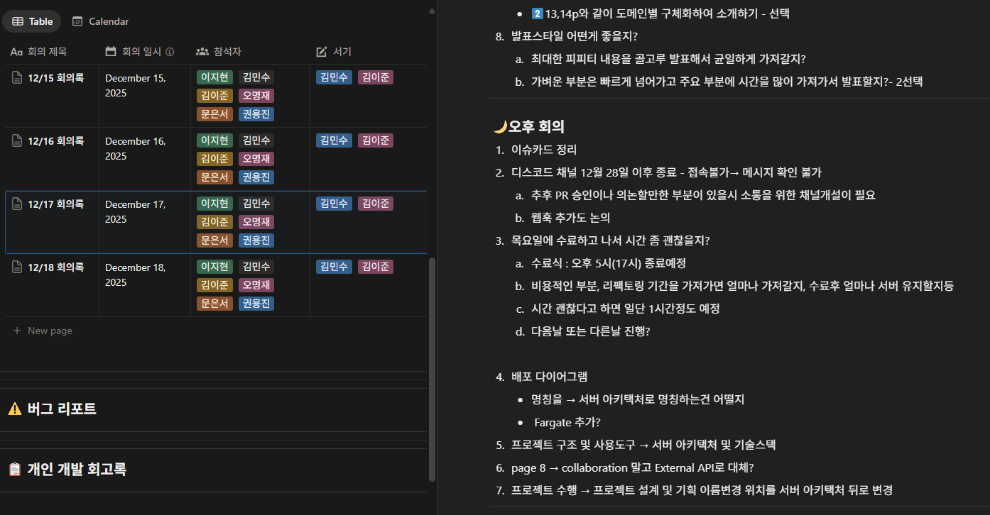 지금 되돌아보면, 팀장으로서 부족한 부분이 많았던 것 같은데 잘 따라와주시는 팀한테 고마웠다. 또 기술적으로 아쉬운 부분이 많았는데, 지금 생각해보면 리팩토링하거나 고도화 하면 좋을 것 같은 부분들이 꽤 있었다. (예를 들면 쿼리문, 로깅, DB 배포, 모니터링 등등)